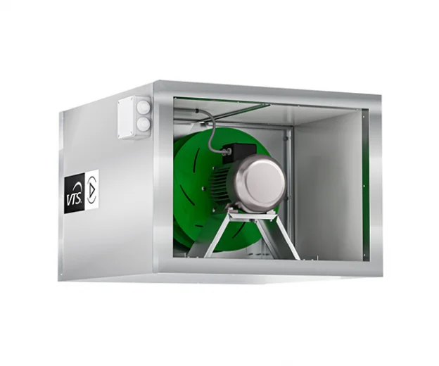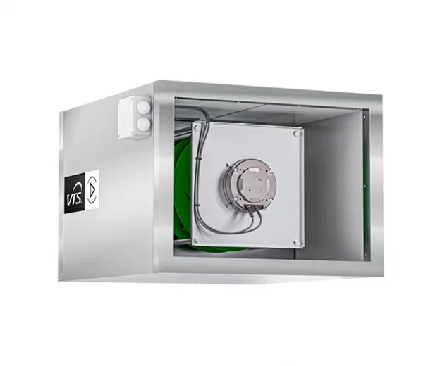 В установке применяются высокопроизводительные вентиляторы типа PLUG, смонтированные на одном валу с электродвигателями класса энергоэффективности IE2.